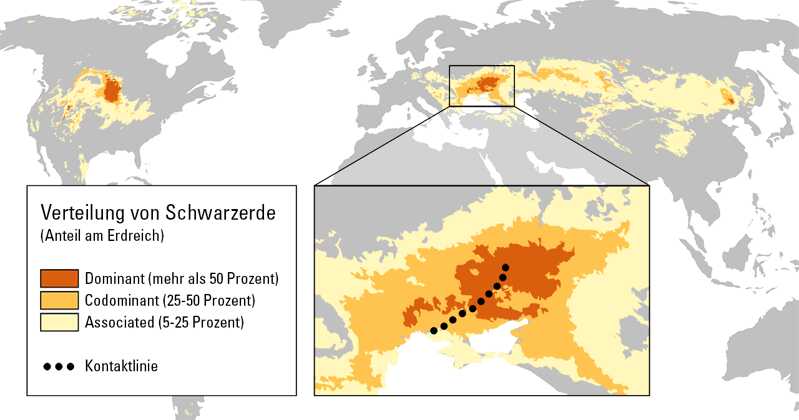 Tschernozeme bedecken eine Fläche von etwa 230 Millionen Hektar. Es gibt zwei „Tschernosem-Gürtel“ in der Welt. Der eine ist die eurasische Steppe, die sich von Ostkroatien (Slawonien) entlang der Donau (Nordserbien, Nordbulgarien, Donauebene), Süd- und Ostrumänien (Walachische Ebene und Moldau-Ebene) und Moldawien bis in den Nordosten der Ukraine über die zentrale Schwarzerdegebiete Zentral- und Südrusslands bis nach Sibirien erstreckt.