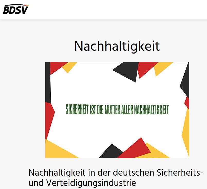 „Beispielsweise entwickeln BDSV-Mitgliedsunternehmen, gemeinsam mit dem Verteidigungsministerium, innovative Systeme und Verwendungsmethoden um die Bundeswehr bei der angepeilten Erreichung der Klimaneutralität zu unterstützen. Natürlich bleibt dabei der Schutz der Soldatinnen und Soldaten an erster Stelle.