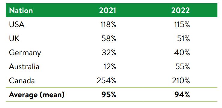 • Für fünf der weltweit größten Militärausgabenländer – USA, Großbritannien, Deutschland, Australien und Kanada – wurden die im Rahmen der UNFCCC vorgelegten Daten zu direkten militärischen Treibhausgasemissionen mit den Daten verglichen, die von den nationalen Verteidigungsministerien in ihren eigenen Berichten veröffentlicht wurden. Es zeigte sich, dass die Daten in den Berichten der Verteidigungsministerien im Durchschnitt um 95 % höher waren. Mit anderen Worten: Die an die UNFCCC gemeldeten Zahlen müssten etwa verdoppelt werden, um eine genauere Schätzung der direkten militärischen Emissionen zu erhalten.